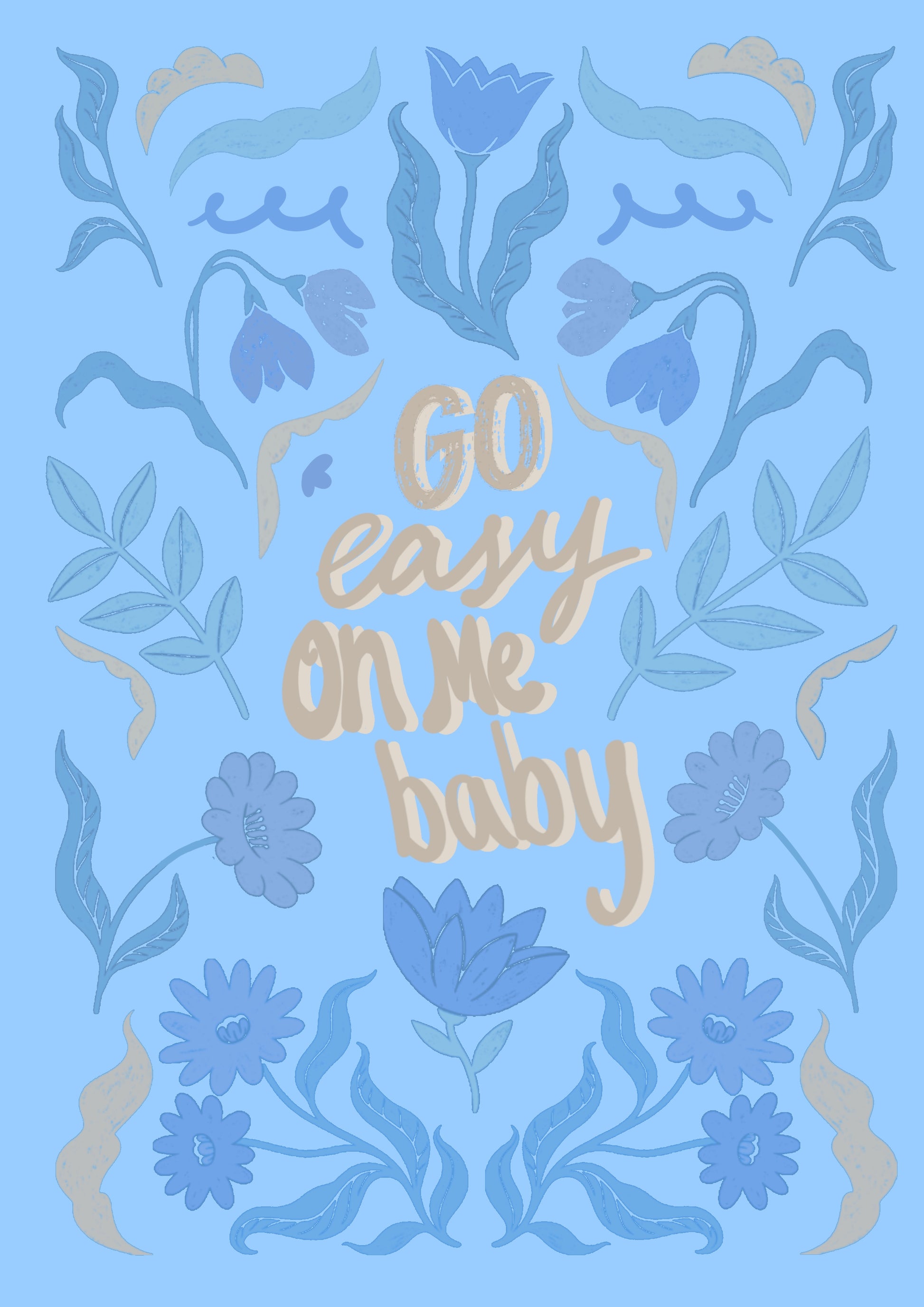 Illustrated Blue Adele “Easy” Print. Comes in sizes 5x7 inch, 8x12 inch and 12x16 inch in Matte Card