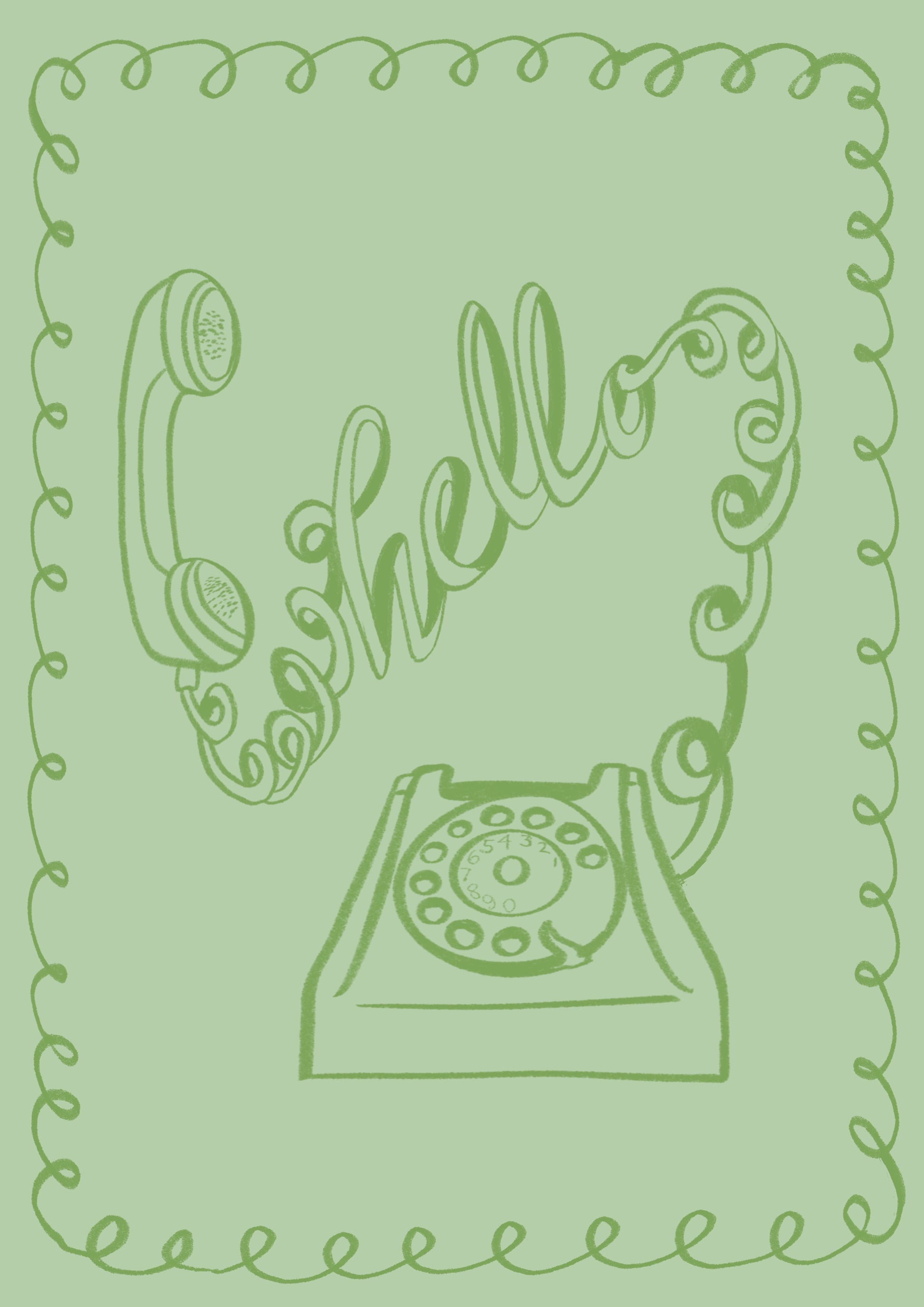 Illustrated green Adele “Hello” Print. Comes in sizes 5x7 inch, 8x12 inch and 12x16 inch in Matte Card