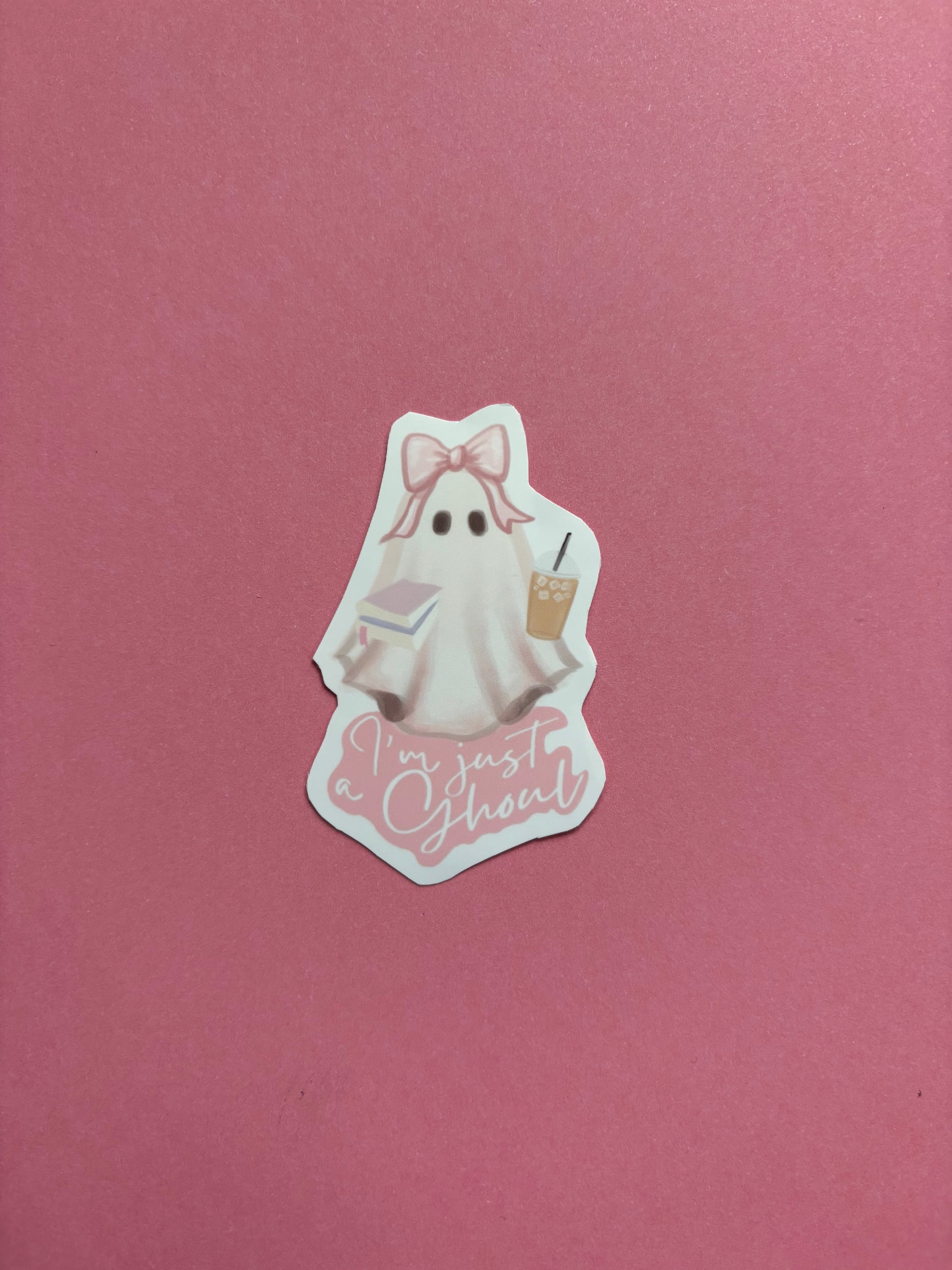 Ghost Pin Badge of the design “I‘m just a Ghoul”. Acrylic With Rubber Back.