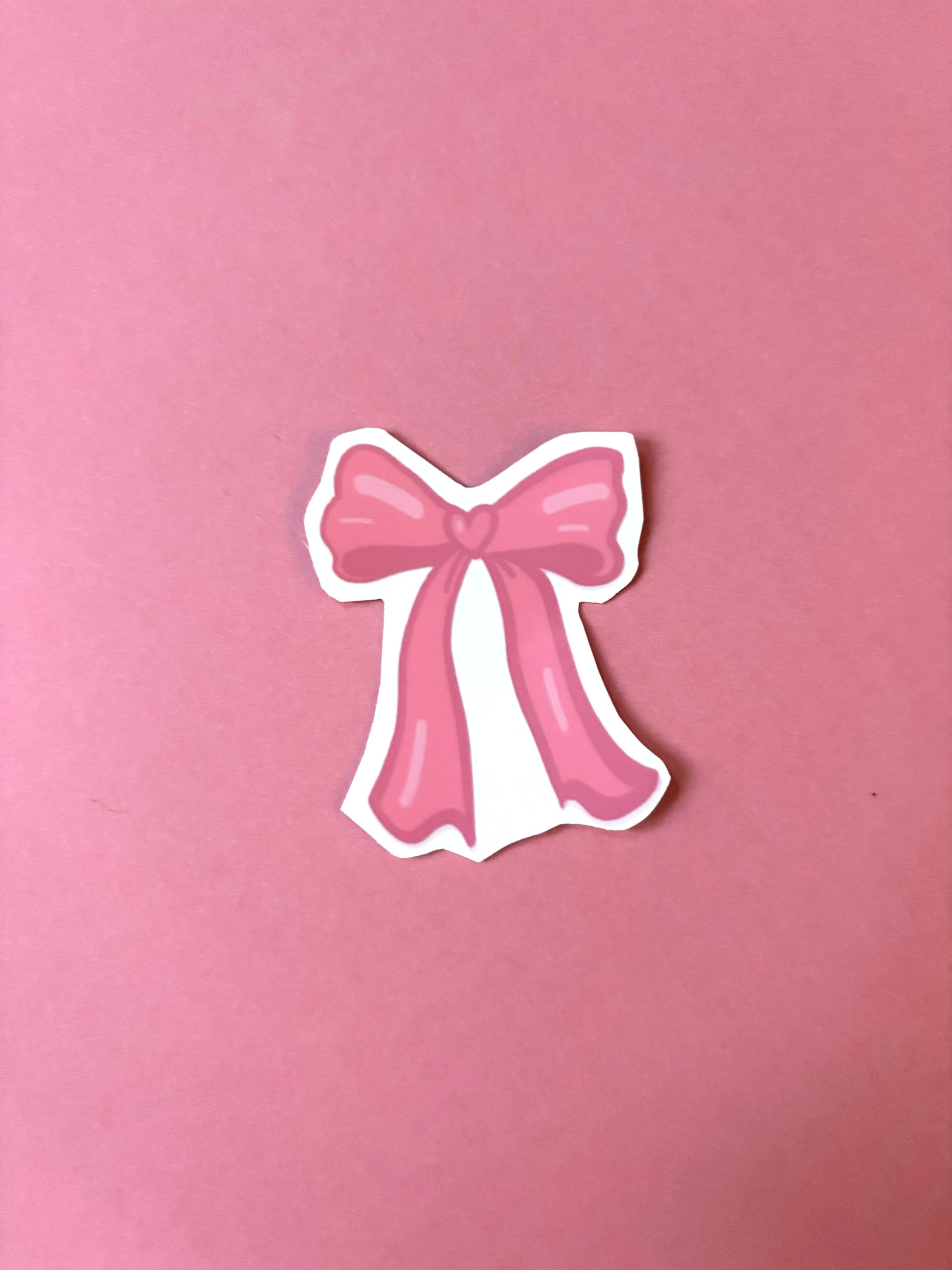 Sticker of an illustration of a pink bow. White gloss and waterproof sticker.
