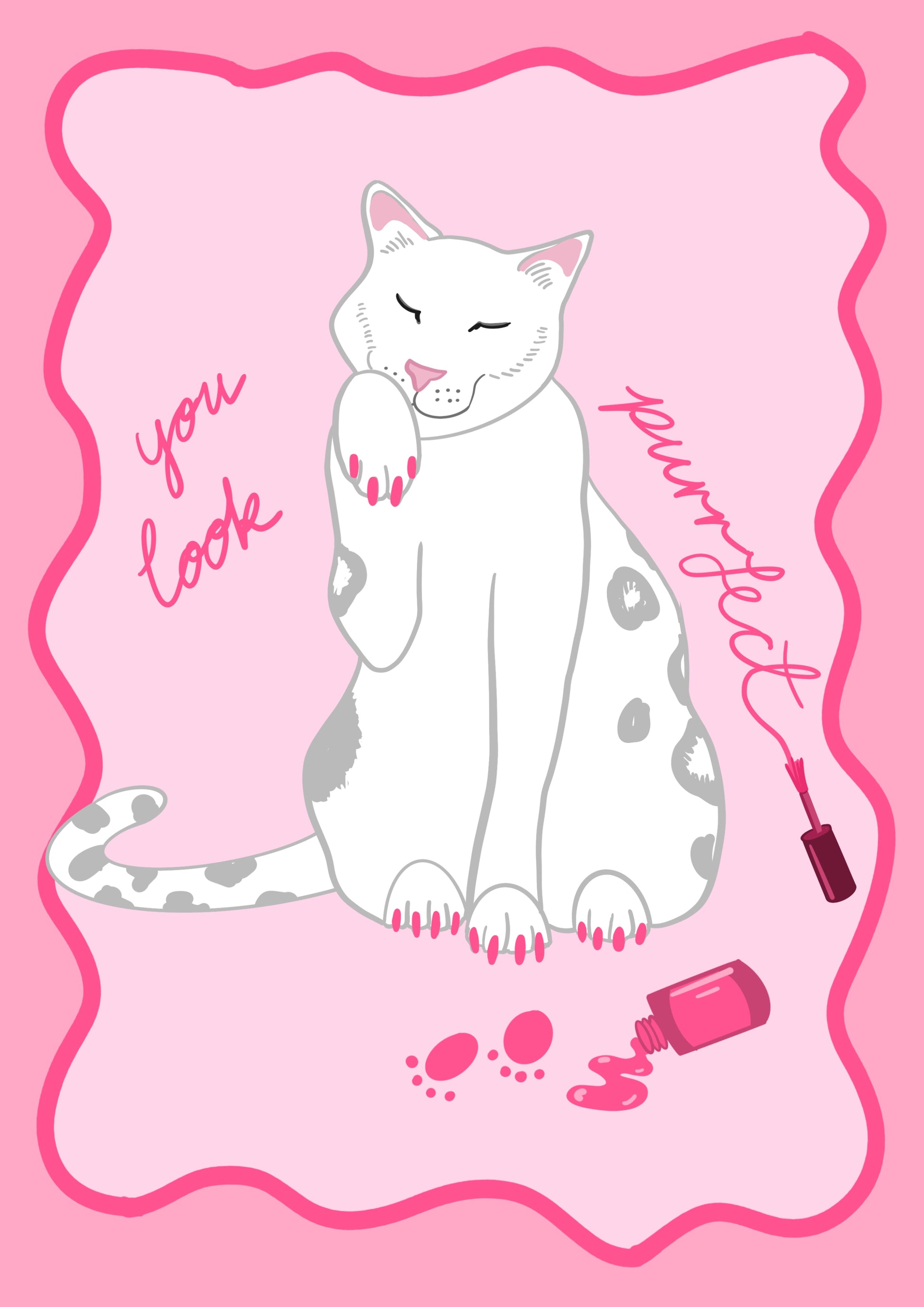 Illustrated Pink Ed Sheeran “Perfect” Cat Print. Comes in sizes 5x7 inch, 8x12 inch and 12x16 inch in Matte Card