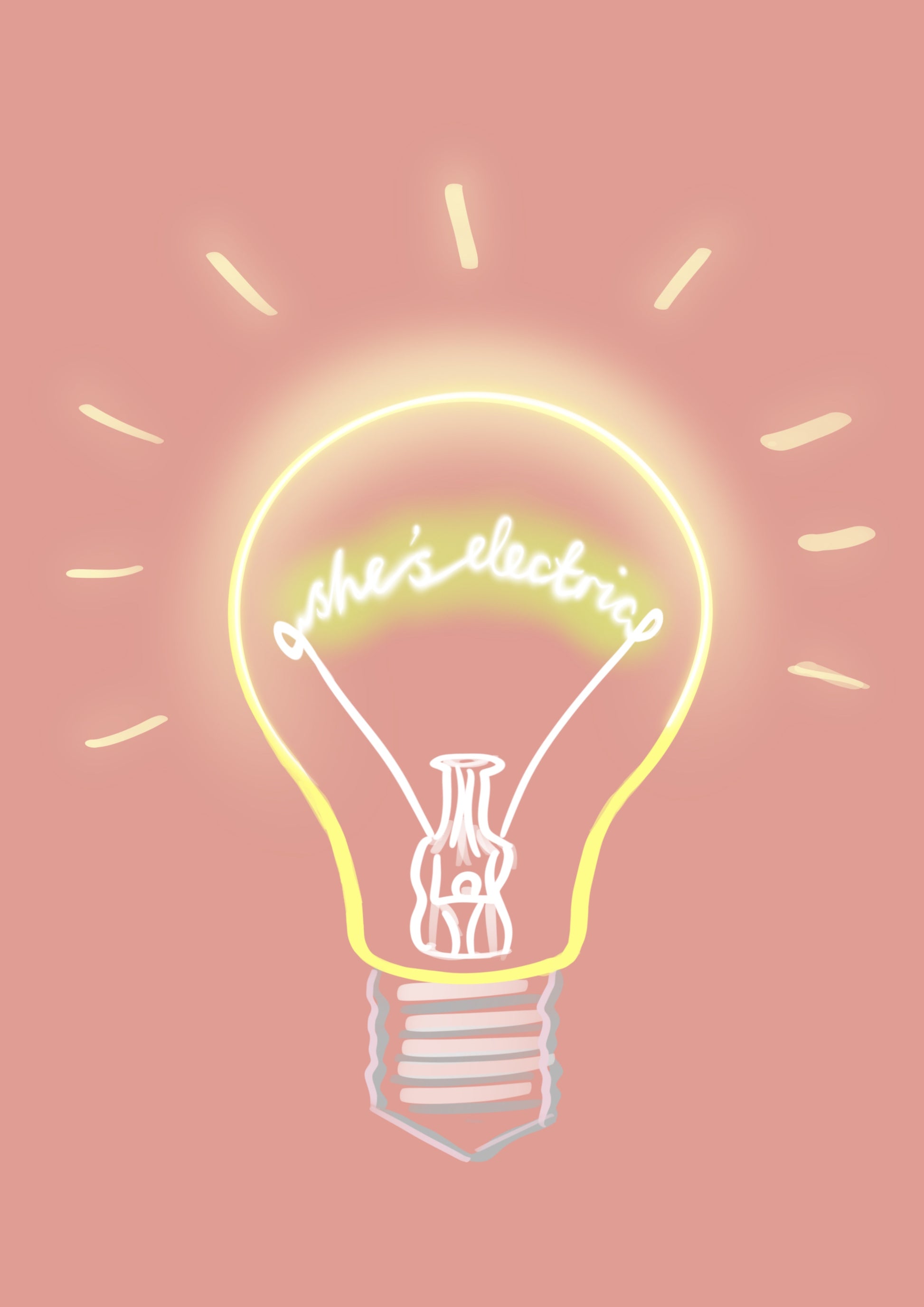 Illustrated red Oasis She’s Electric Print. Comes in sizes 5x7 inch, 8x12 inch and 12x16 inch in Matte Card