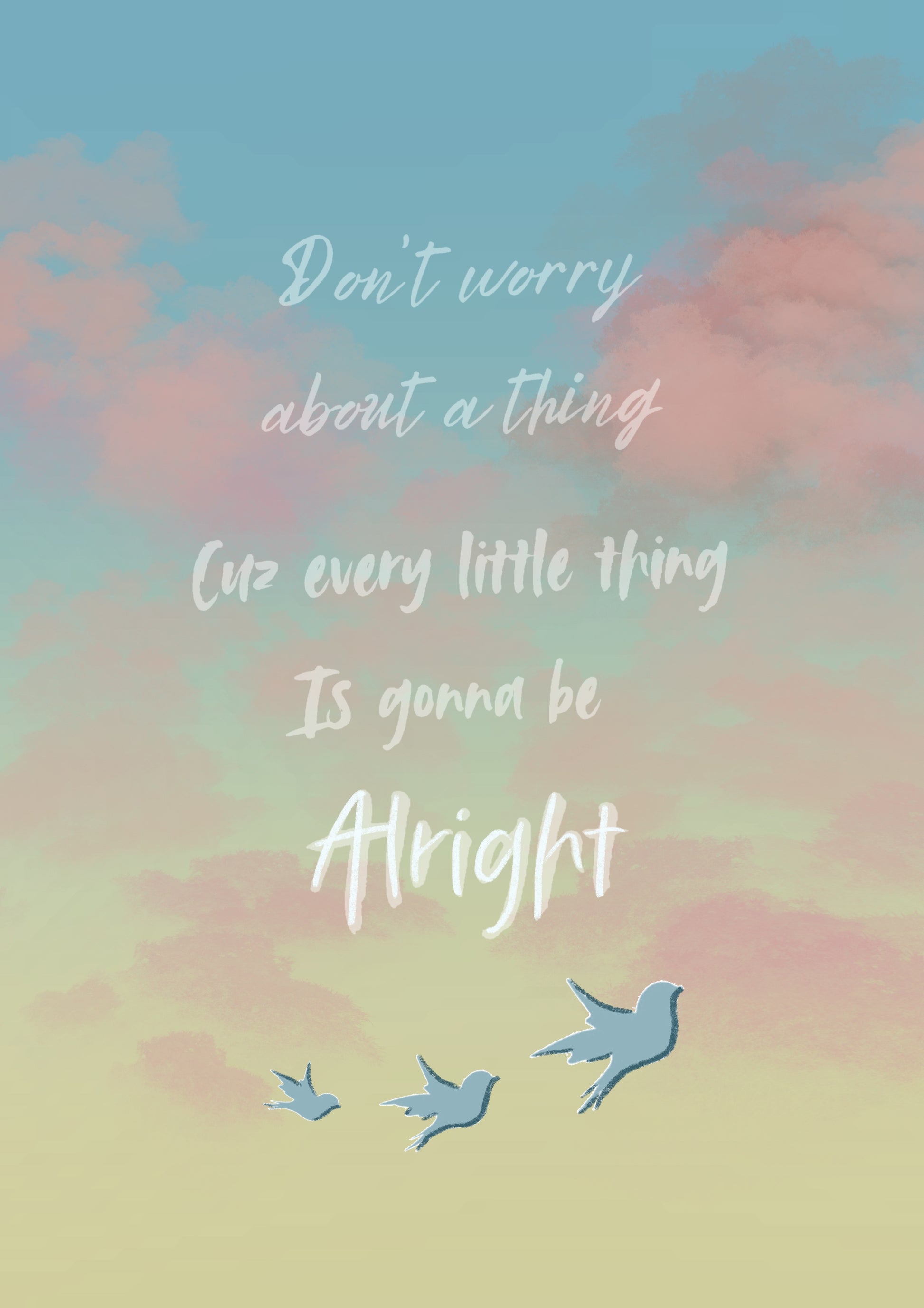 Illustrated Bob Marley Three Little Birds Print. Comes in sizes 5x7 inch, 8x12 inch and 12x16 inch in Matte Card